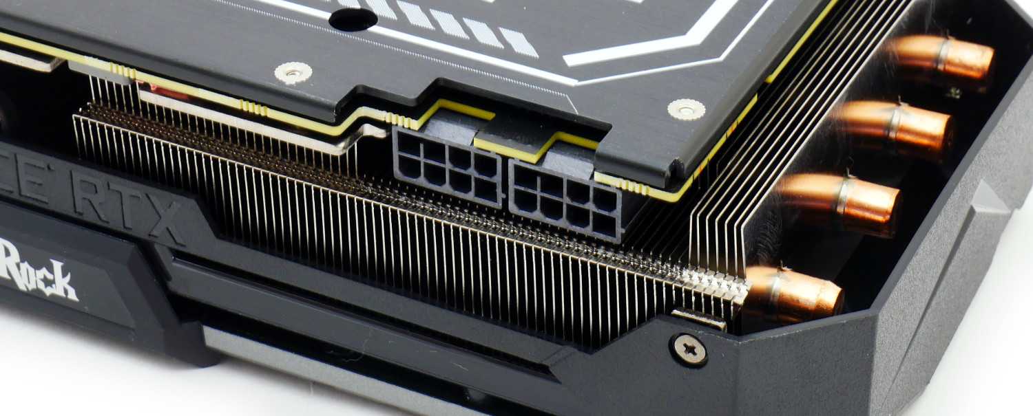 Для подвода дополнительного питания используются два коннектора в 6 и 8 контактов. Реализация 6-pin разъёма нестандартная — это полноразмерный 8-pin с запаянными двумя отверстиями.