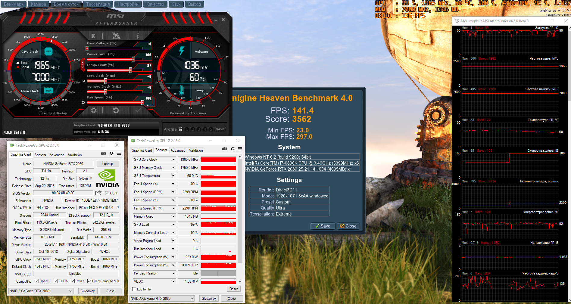 Для разгона видеокарт, а также мониторинга температур и оборотов вентиляторов использовалась фирменная утилита MSI Afterburner.