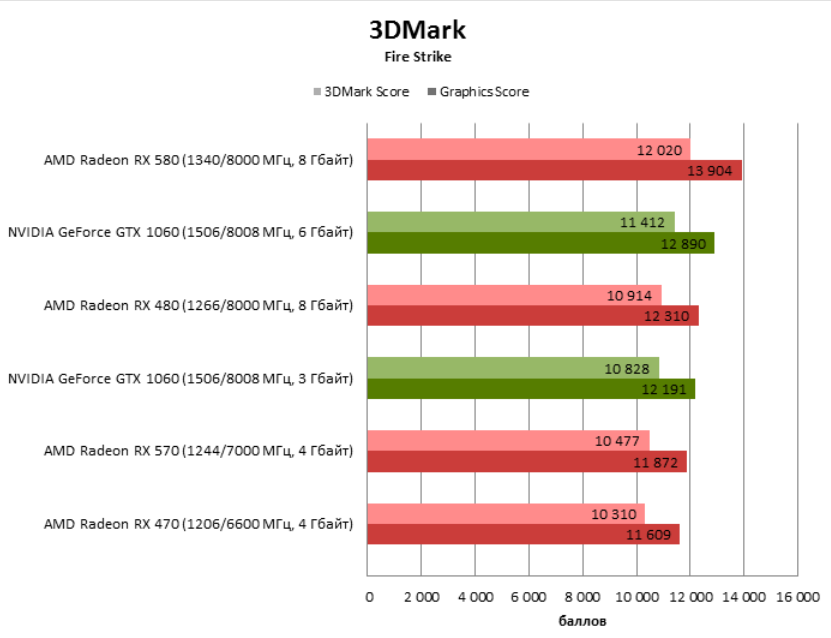 Остальные участники тестирования показывают результат, который находится в пределах 5% от показателей RX 570 в ту или иную сторону во всех тестах: Time Spy, Fire Strike и Extreme.