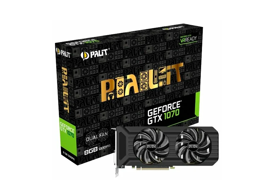 - Palit GeForce GTX 1070. В плане майнинговых возможностей данную плату можно считать практически близнецом предыдущей модели. Основные характеристики те же — 8 Гб памяти типа GDDR5, мощность в 150 Вт. При майнинге Эфира Palit GeForce GTX 1070 выдает 31,2 MH/s. Также, рассматриваемая модель подходит для добычи валюты Zcash. В среднем значение хешрейта составляет 513 Sol/s. За приобретение данной видеокарты придётся заплатить порядка 890 долларов. С учётом хешрейта и мощности, плата должна окупить себя относительно быстро.